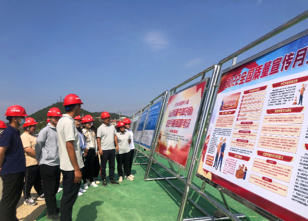 分公司牢固樹立質量第一意識,不斷提高質量效益。“質量月”動員會上,分公司質量管理領頭人進行倡議發言,旨在“榜樣”的引領帶動下,廣泛推行全員質量管理,不斷提升質量水平。活動開展過程中,施工現場懸掛“質量月”宣傳條幅42條、質量展板8塊、宣傳海報8張,營造出“人人關心質量、重視質量、追求質量、守護質量”的共治共享氛圍。