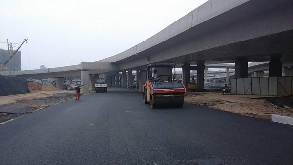 6月23日,二環(huán)南四標(biāo)進(jìn)行立交橋下快車道瀝青攤鋪。快車道底面層用粗粒式Ac-25面積為12000平方,中面層用中粒式Ac-16面積為14300平方。攤鋪前攤鋪項(xiàng)目部提前計(jì)劃,合理安排,共組織4臺(tái)攤鋪機(jī),2臺(tái)壓路機(jī);攤鋪過程中現(xiàn)場(chǎng)施工人員緊密配合,加強(qiáng)對(duì)每一環(huán)節(jié)檢測(cè)控制與管理,保證了攤鋪質(zhì)量。預(yù)計(jì)到26日完成此次攤鋪任務(wù)。