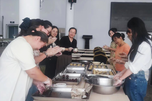 為弘揚(yáng)中華優(yōu)秀傳統(tǒng)文化,進(jìn)一步增進(jìn)職工交流,近日,匯通集團(tuán)組織開展“我們的節(jié)日·中秋”主題活動,10余名職工參自制月餅活動,喜迎中秋佳節(jié)。吃月餅是中國傳統(tǒng)節(jié)日中秋節(jié)的重要習(xí)俗之一。月餅不僅是一種美食,更有著深刻的文化意義和寓意,在準(zhǔn)備制作月餅的過程中,職工不僅僅是在體驗(yàn)一種傳統(tǒng)習(xí)俗,更是在傳遞一份深厚的文化情感。自制月餅并不復(fù)雜,需要的材料和步驟也相對簡單。首先是要準(zhǔn)備好月餅皮和月餅餡料。月餅皮可以用面粉、白糖、植物油等原材料制成,而月餅餡料則可以根據(jù)個人口味和喜好來選擇,此次活動準(zhǔn)備了棗泥和豆沙兩種餡料。接下來是制作月餅生坯。取一個餅皮,稍稍拍扁轉(zhuǎn)圓,放上一個稱重符合標(biāo)準(zhǔn)的餡料,然后右手將餡