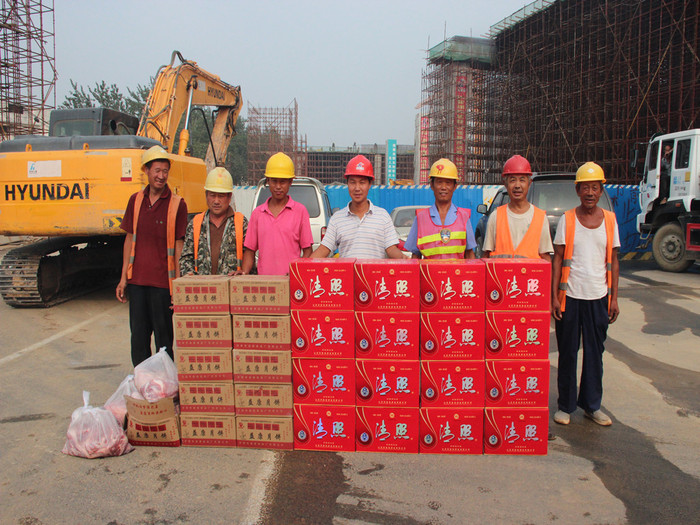 9月7日,中秋節前夕,我們的城市建設者,我們的農民工兄弟卻仍然堅守在一線,為了農民工也能感受到節日的歡樂和溫馨,在集團副總經理兼五分公司經理呂守明安排下,五分公司工會分會為農民工兄弟送去了白酒、月餅等慰問品,及節日的祝福,讓他們感受到了來自企業大家庭的溫暖和關懷,讓農民工充分感受“家”的溫暖,過一個充滿幸福的中秋節。