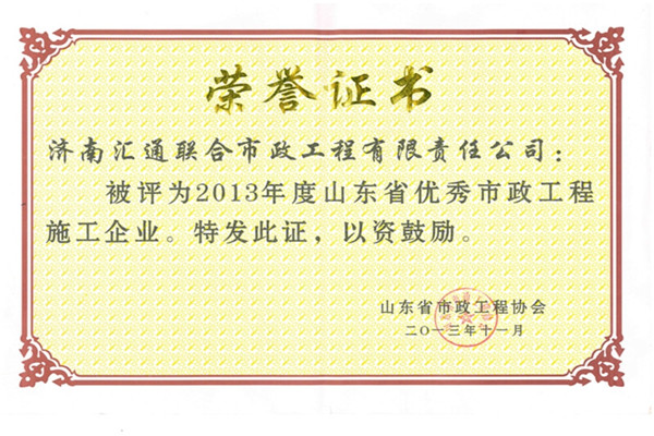 山東省優秀市政工程施工企業