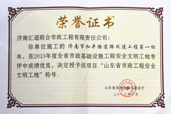 山東匯通建設集團有限公司是成立于2003年的國有大型企業,注冊資本金3億元,擁有市政公用工程施工總承包壹級資質、鋼結構工程專業承包資質,是山東省市政行業知名企業、濟南市市政行業骨干企業,通過質量、環境、職業健康安全一體化管理體系認證。