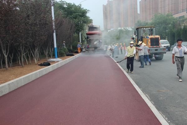 7月11日下午,攤鋪項目部對旅游路工程涵玉翠嶺段北半幅慢車道進行了彩色瀝青的攤鋪施工,本次攤鋪施工在全體項目部人員的團結協作下,歷時3小時順利完成。施工過程中質檢人員嚴格監測平整度和壓實度等質量問題,全程質檢跟蹤監測,嚴把質量關。攤鋪過程中,施工人員根據彩色瀝青的施工要求,特別注意施工過程的策劃和清潔控制,從出料、運輸、現場施工中的清潔處理都做了詳細的安排和要求,攪拌站工作人員和現場施工人員緊密協作,圓滿完成了該段彩色瀝青的攤鋪施工。彩色的路面與旅游路周圍的青山綠水相映成趣,仿佛一條彩帶貫穿于青蔥之間,成為一道亮麗的風景。