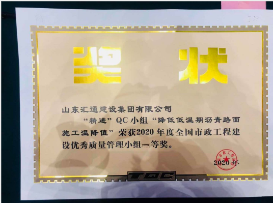 近日,由山東匯通建設(shè)集團有限公司組建的“飛躍”和“精進”QC小組參加了中國市政協(xié)會舉辦的2020年度全國市政工程建設(shè)優(yōu)秀質(zhì)量管理評比交流會,并在100多個參會小組中脫穎而出,雙雙榮獲全國市政工程建設(shè)優(yōu)秀質(zhì)量管理小組一等獎。 此次QC評比交流會中,山東匯通建設(shè)集團有限公司組建的“飛躍”QC小組發(fā)布的“降低瀝青混合料生產(chǎn)燃?xì)庀牧俊焙汀熬M”小組發(fā)布的“降低低溫期瀝青路面施工溫降值”兩個課題,在該小組成員努力及公司領(lǐng)導(dǎo)和技術(shù)質(zhì)量部的指導(dǎo)之下,按時提交了此課題的活動成果,并在發(fā)布會上發(fā)揮出色,綜合評分名列前茅,為公司爭得榮譽。 此次成績的取得,正是源于項目部員工日常工作的積累,對細(xì)節(jié)的把握和