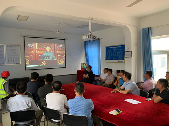 匯通黨總支成員袁鵬在衢州項目部觀看直播;王德慶在沭陽項目部觀看直播;蘆大偉在大西環(huán)項目部觀看直播。匯通所有項目部全部組織觀看直播:黃河大道項目部、建材生產(chǎn)基地、S103旅游公路項目、郭店市政路項目部、智慧物流園項目部、瀝青南站、飛躍大道項目部、電工所北路項目部、旅游路東延項目部、連云港金海路項目部、瀝青東站、沭陽項目部、攤鋪項目部、繞城高速公路二環(huán)線西環(huán)段項目部、霍邱產(chǎn)業(yè)園項目部、衢州項目部、阜陽潁泉區(qū)項目部、泰安環(huán)山路項目部,18個項目部共組織近三百人觀看。